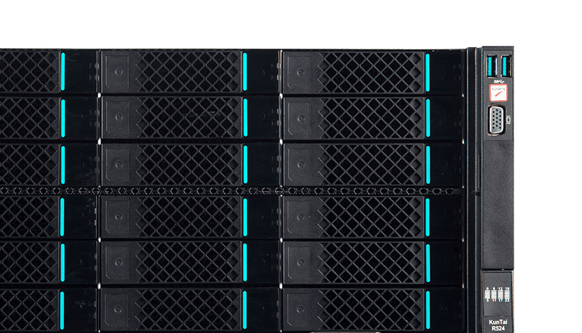 KunTai R524 存储型服务器是豪门国际数码基于鲲鹏处理器推出的新一代 ARM数据中心服务器。。。。主要面向存储业务,,,,具有海量存储、、、、高性能、、、低功耗以及易扩展的特点,,,适合为大数据分析、、、软件定义存 储等应用场景的工作负载进行髙效加速。。。。